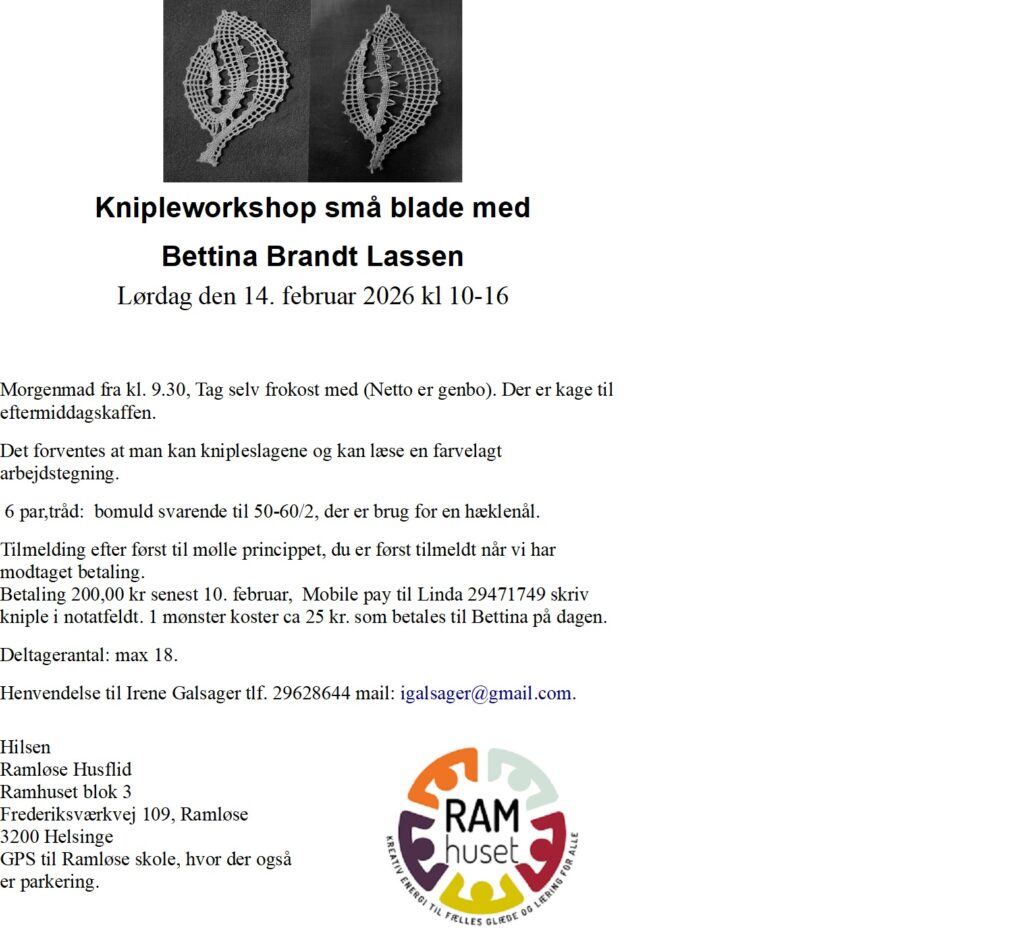 Tråden og Karelly Knipleservice arrangerer en række kurser. Se nærmere om de enkelte arrangementer på hjemmesiden karelly.dk/kurser-og-arrangementer/